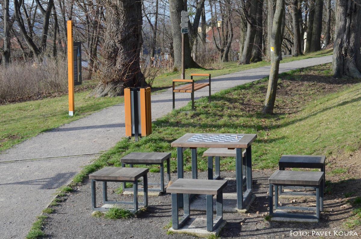na Šumavu, orientaci umožňuje panoramatická mapa s popisem jednotlivých